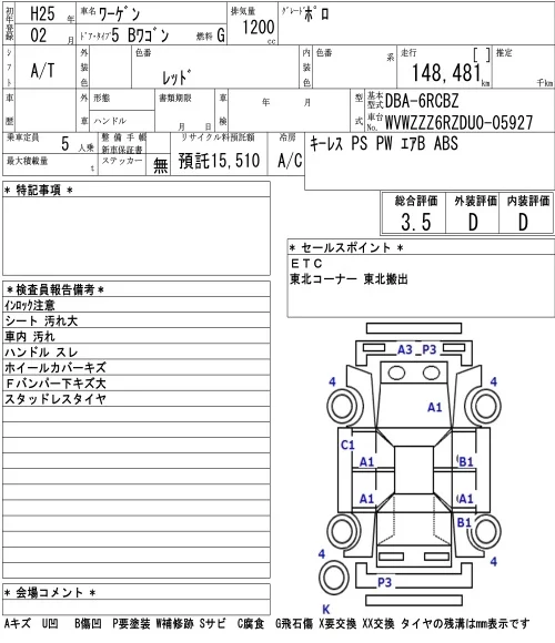 Volkswagen Polo с аукциона Японии NAA Tokyo лот № 5810