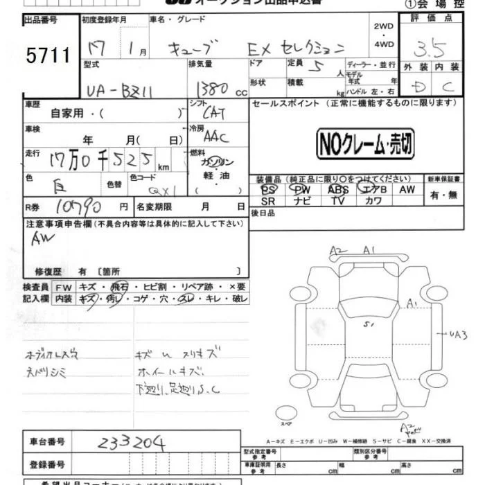 Nissan CUBE с аукциона Японии JU Chiba лот № 5711