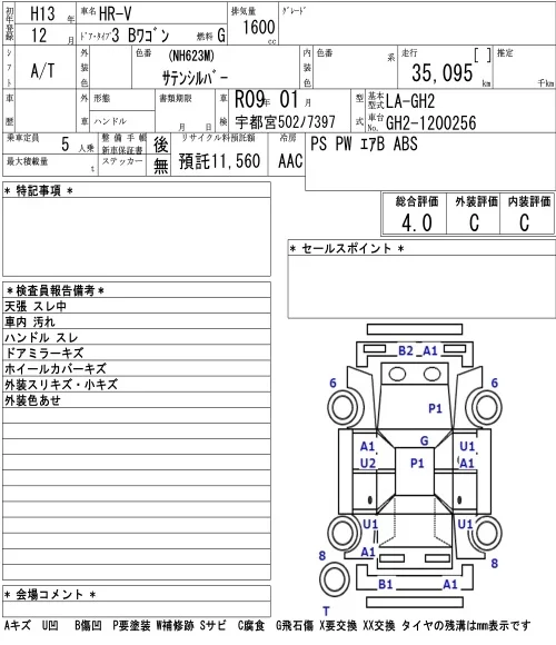 Honda HR-V с аукциона Японии NAA Tokyo лот № 7052