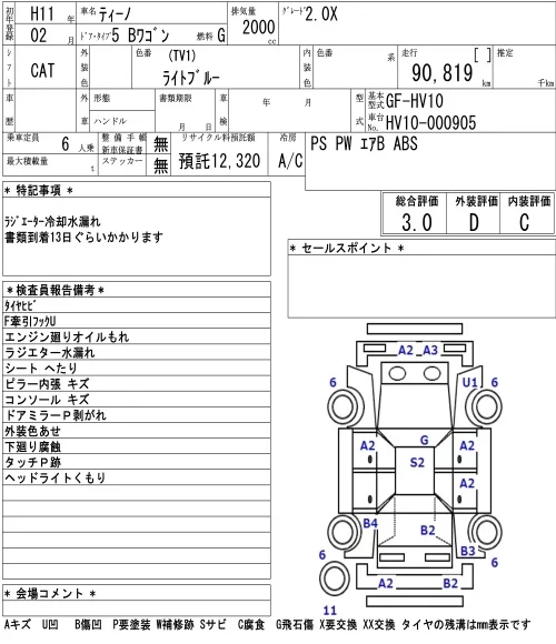 Nissan TINO с аукциона Японии NAA Tokyo лот № 8544