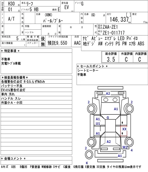 Nissan LEAF с аукциона Японии NAA Tokyo лот № 8036