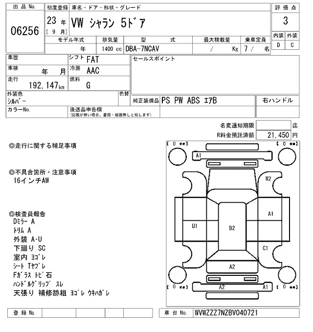 Volkswagen SHARAN с аукциона Японии ARAI Sendai лот № 6256