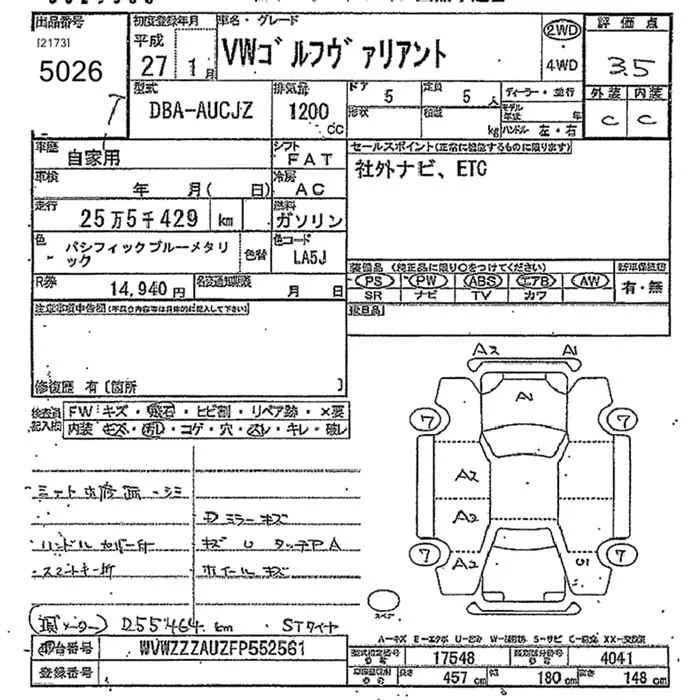 Volkswagen GOLF VARIANT с аукциона Японии JU Tochigi лот № 5026