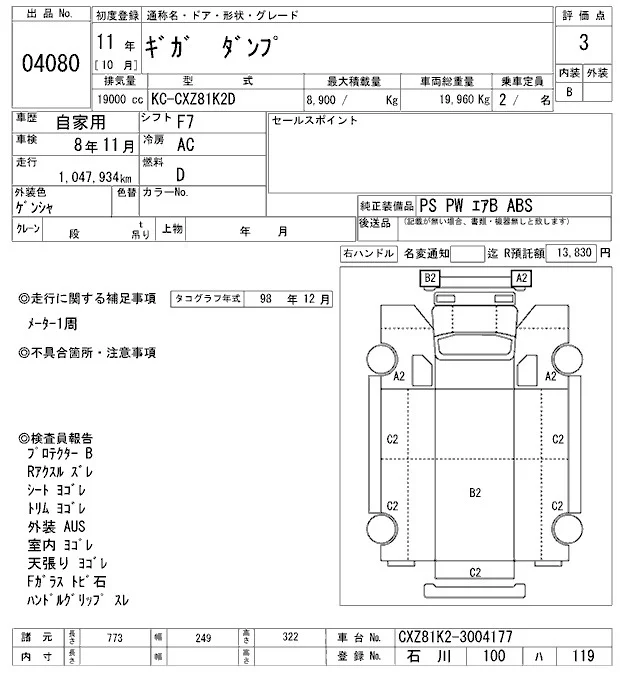 Isuzu GIGA с аукциона Японии ARAI Oyama VT лот № 4080