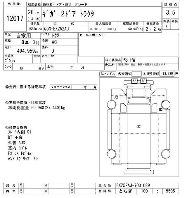 Isuzu GIGA с аукциона Японии ARAI Oyama VT лот № 12017