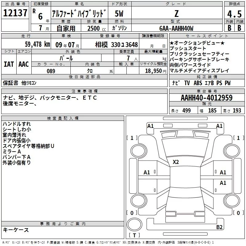 Toyota ALPHARD с аукциона Японии TAA Yokohama лот № 12137