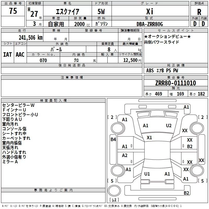 Toyota ESQUIRE с аукциона Японии TAA Hyogo лот № 75