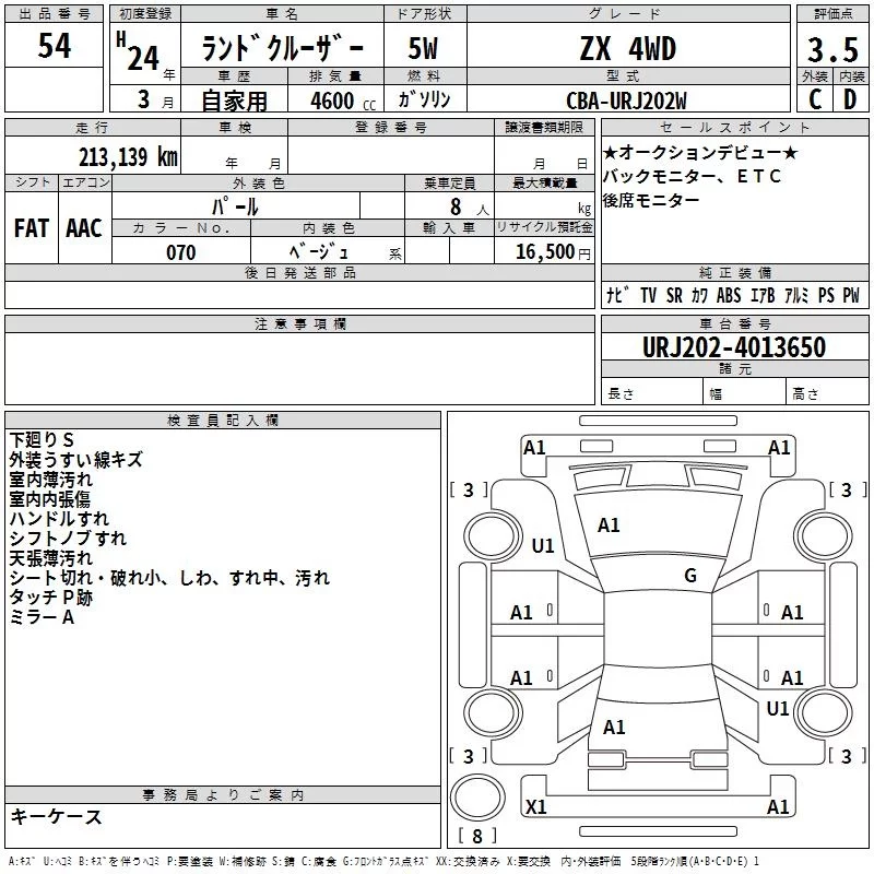 Toyota LAND CRUISER с аукциона Японии TAA Yokohama лот № 54