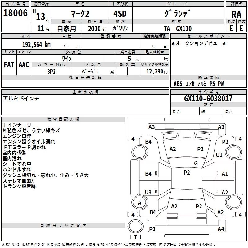 Toyota MARK II с аукциона Японии TAA Yokohama лот № 18006