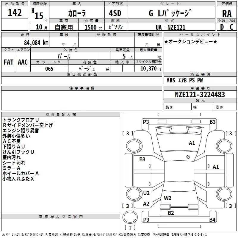 Toyota COROLLA с аукциона Японии TAA Hyogo лот № 142