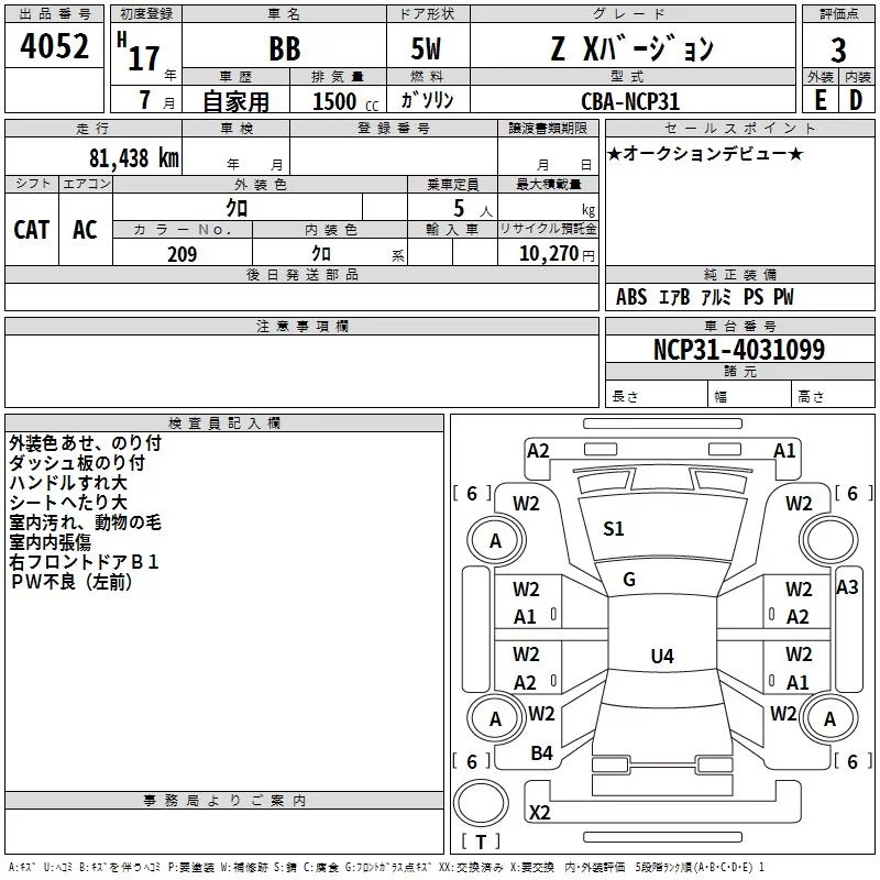 Toyota BB с аукциона Японии TAA Yokohama лот № 4052