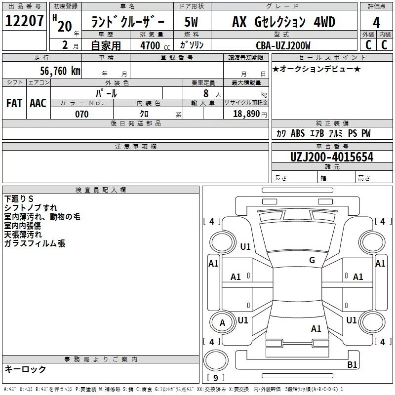Toyota LAND CRUISER с аукциона Японии TAA Yokohama лот № 12207