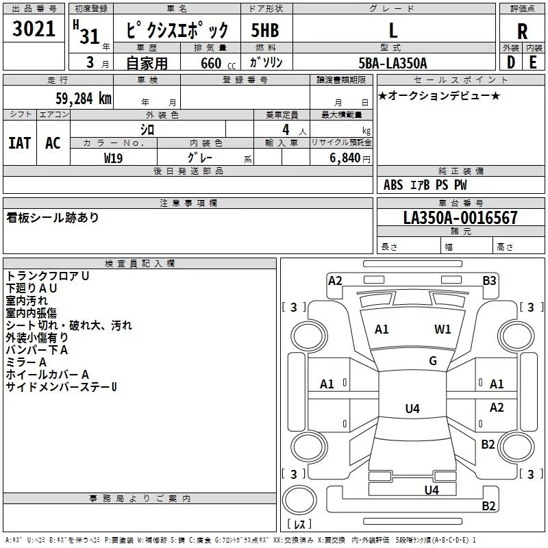 Toyota PIXIS EPOCH с аукциона Японии TAA Hyogo лот № 3021