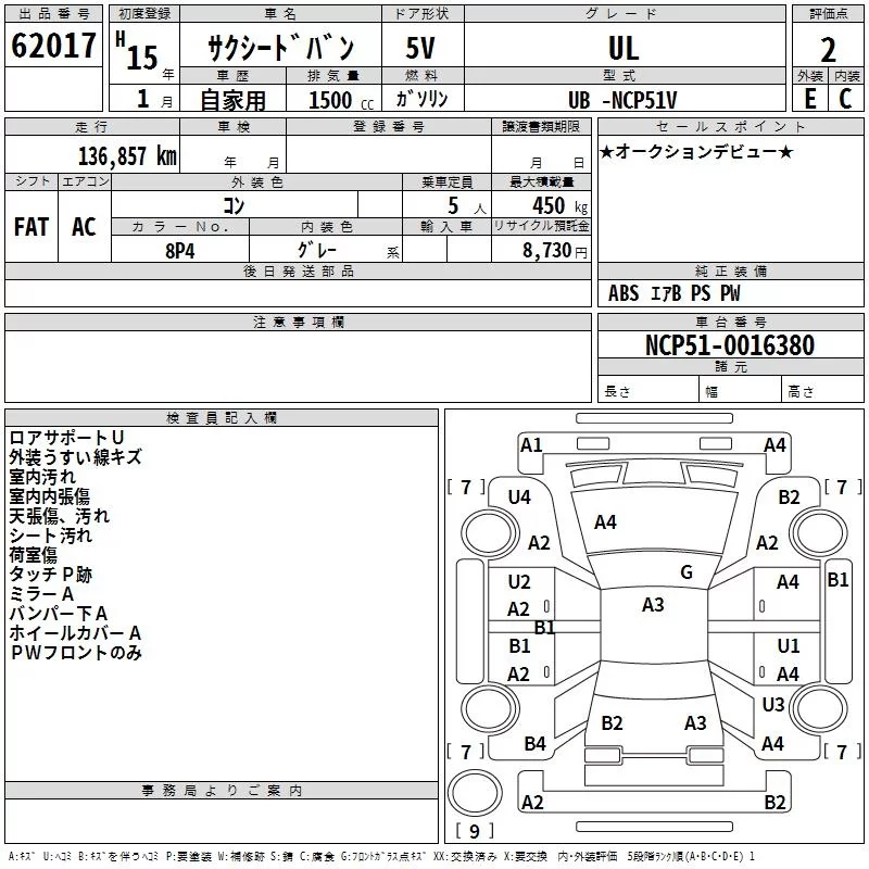 Toyota SUCCEED с аукциона Японии TAA Yokohama лот № 62017