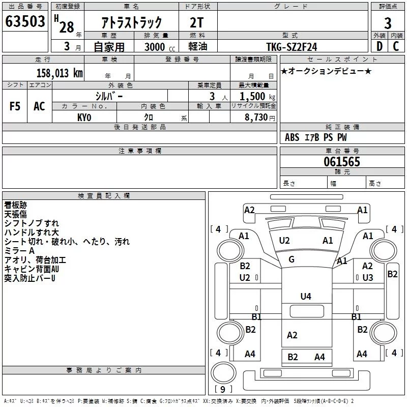 Nissan ATLAS с аукциона Японии TAA Yokohama лот № 63503