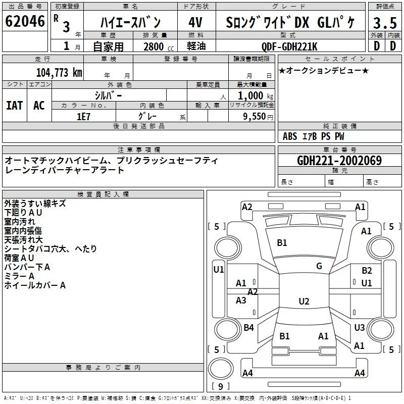 Toyota HIACE VAN с аукциона Японии TAA Yokohama лот № 62046
