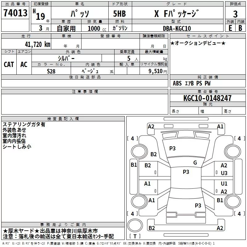 Toyota PASSO с аукциона Японии TAA Yokohama лот № 74013