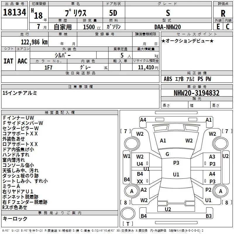 Toyota Prius с аукциона Японии TAA Yokohama лот № 18134