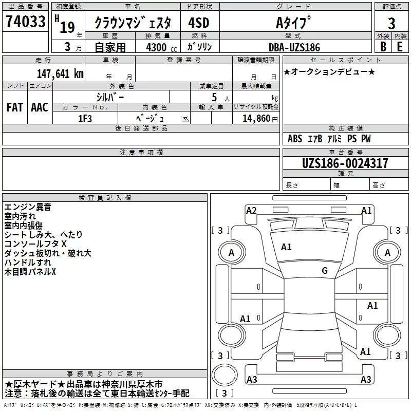 Toyota CROWN с аукциона Японии TAA Yokohama лот № 74033