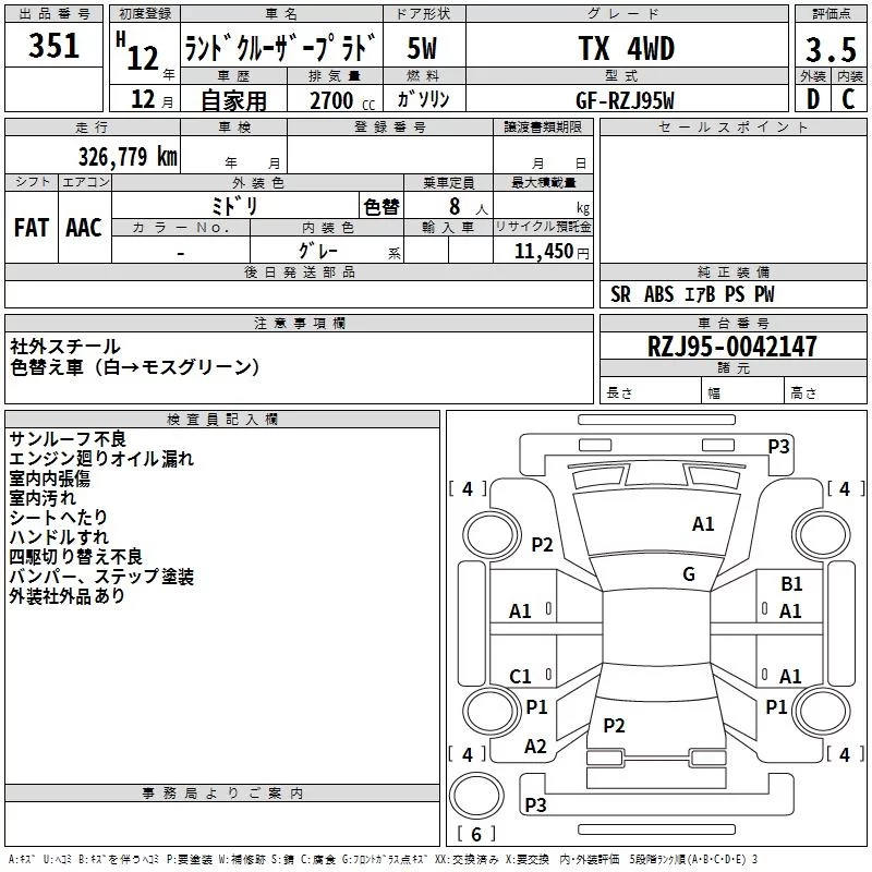 Toyota LAND CRUISER PRADO с аукциона Японии TAA Yokohama лот № 351