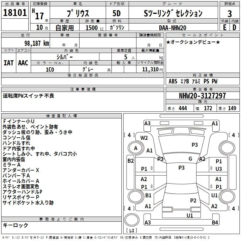 Toyota Prius с аукциона Японии TAA Yokohama лот № 18101