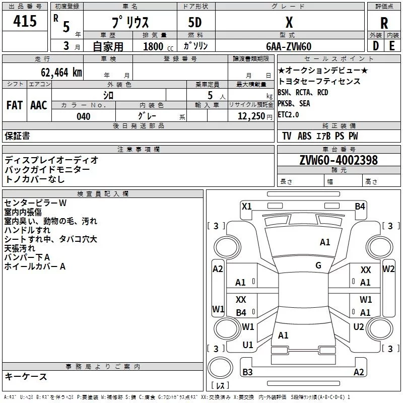 Toyota Prius с аукциона Японии TAA Yokohama лот № 415