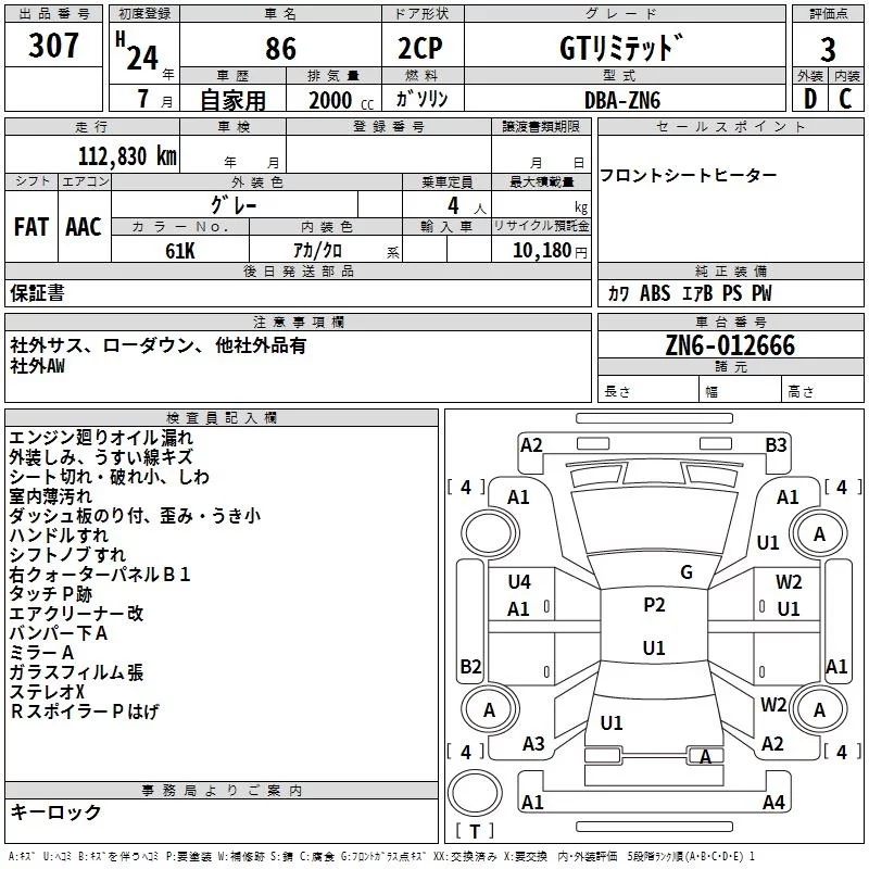 Toyota GT 86 с аукциона Японии TAA Yokohama лот № 307