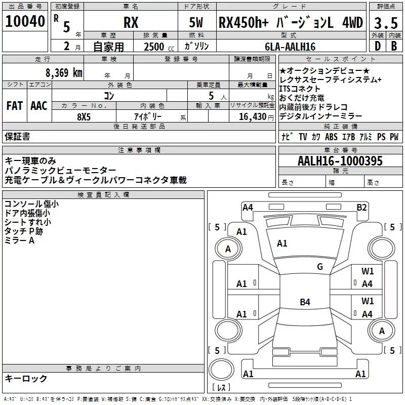 Lexus RX с аукциона Японии TAA Yokohama лот № 10040