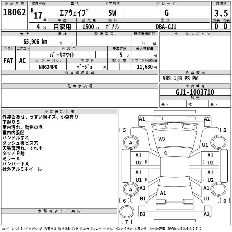 Honda AIRWAVE с аукциона Японии TAA Yokohama лот № 18062