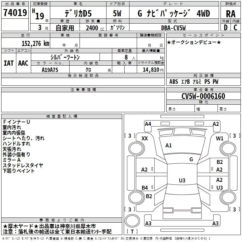 Mitsubishi DELICA D5 с аукциона Японии TAA Yokohama лот № 74019