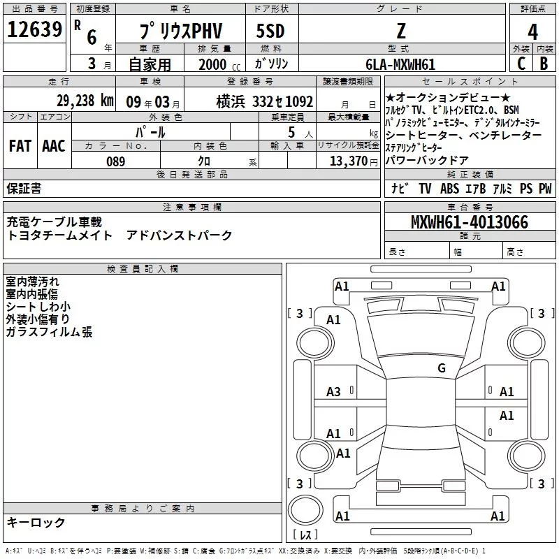 Toyota PRIUS PHV с аукциона Японии TAA Yokohama лот № 12639