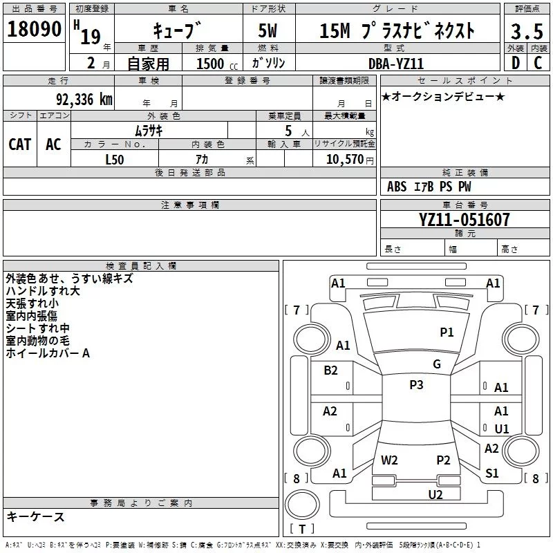 Nissan CUBE с аукциона Японии TAA Yokohama лот № 18090