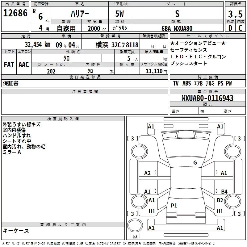 Toyota HARRIER с аукциона Японии TAA Yokohama лот № 12686