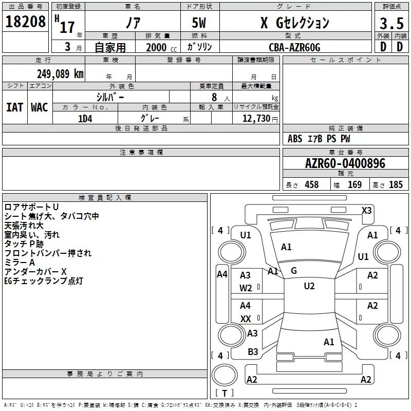 Toyota NOAH с аукциона Японии TAA Yokohama лот № 18208