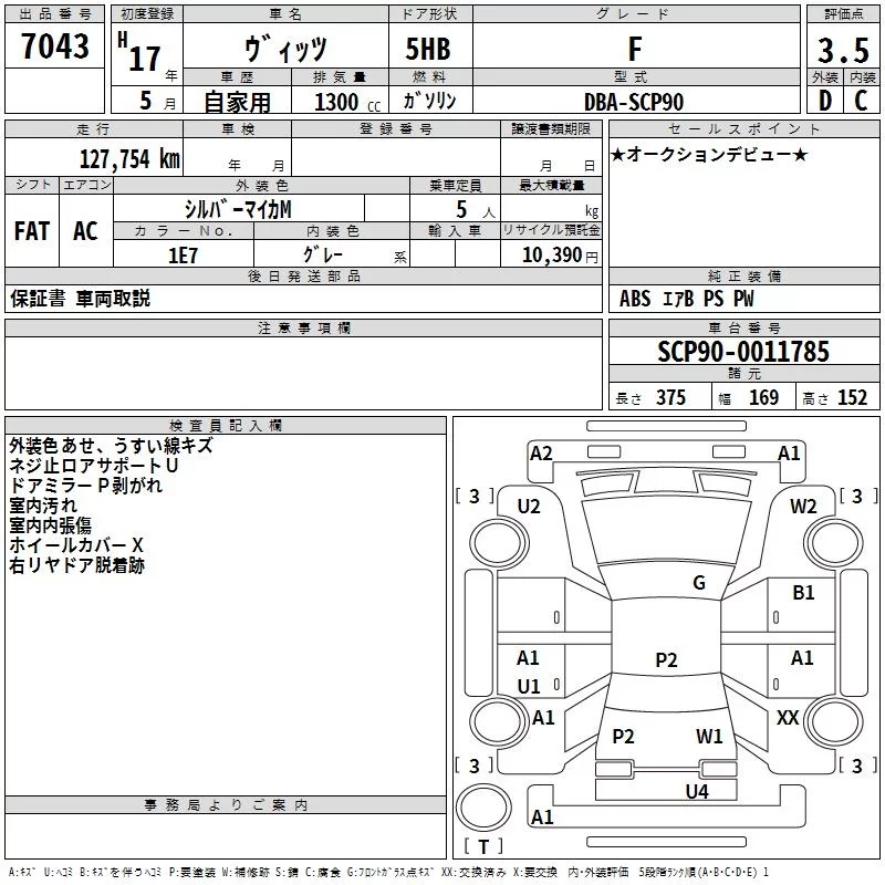 Toyota VITZ с аукциона Японии TAA Hyogo лот № 7043