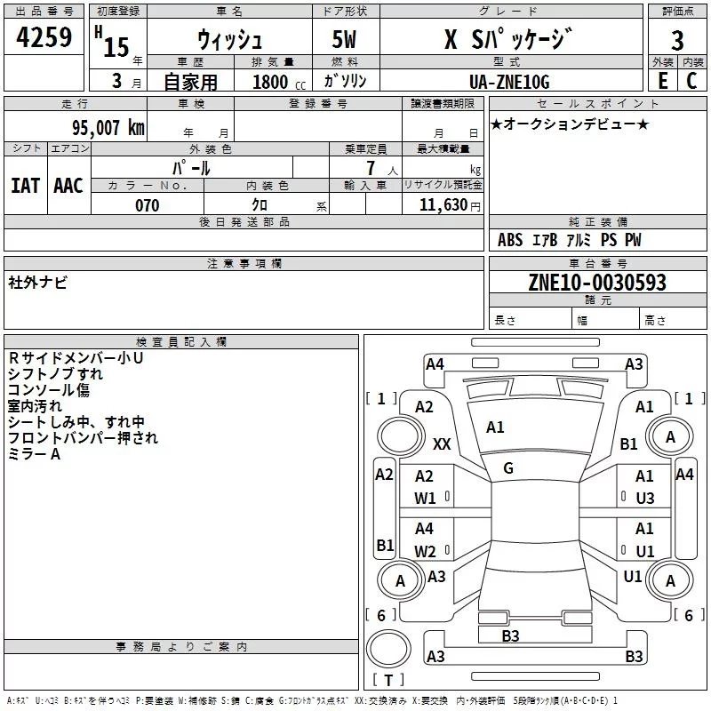 Toyota WISH с аукциона Японии TAA Yokohama лот № 4259