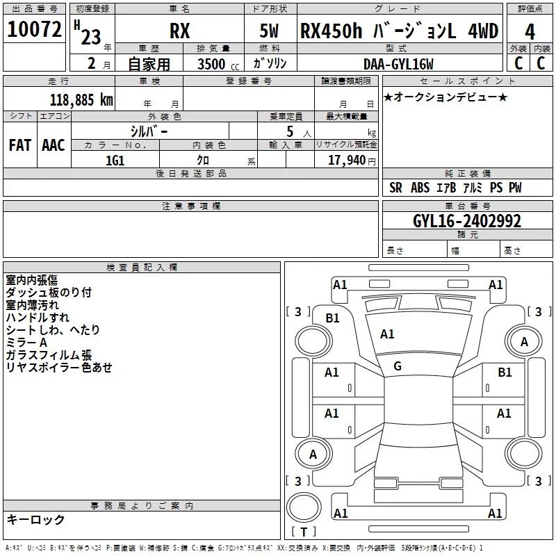 Lexus RX с аукциона Японии TAA Yokohama лот № 10072