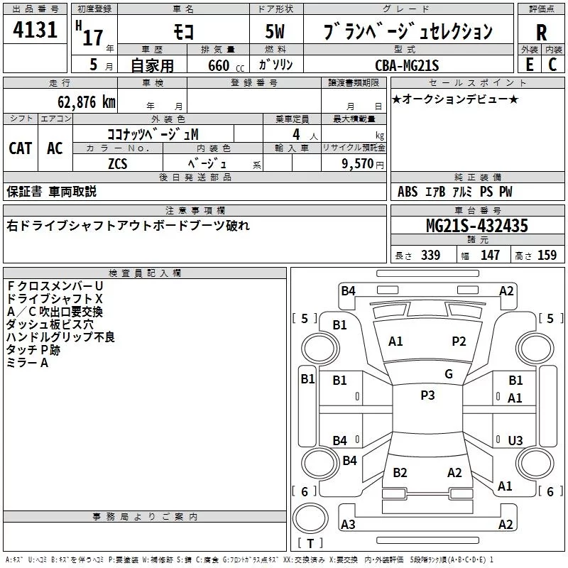 Nissan MOCO с аукциона Японии TAA Hyogo лот № 4131