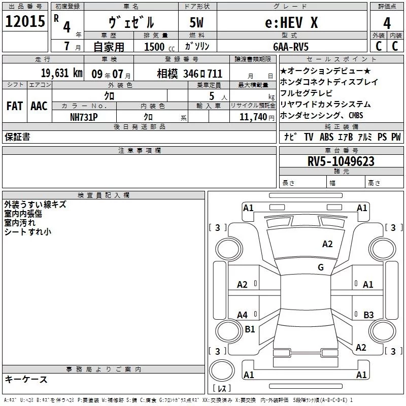 Honda VEZEL с аукциона Японии TAA Yokohama лот № 12015