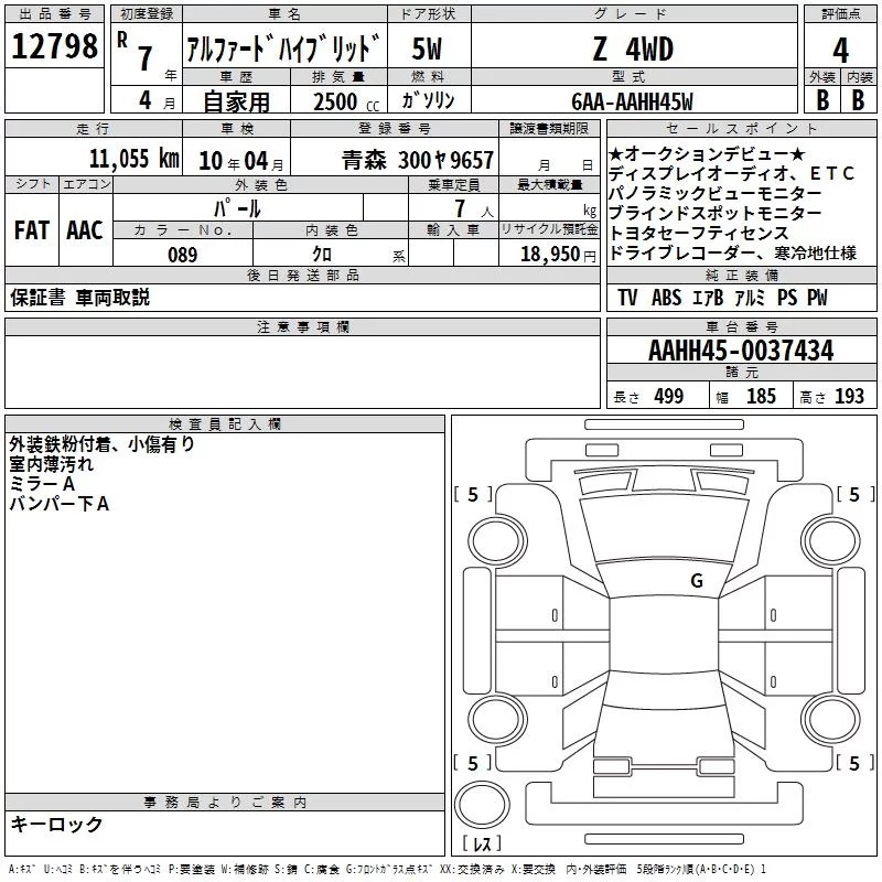 Toyota ALPHARD с аукциона Японии TAA Yokohama лот № 12798