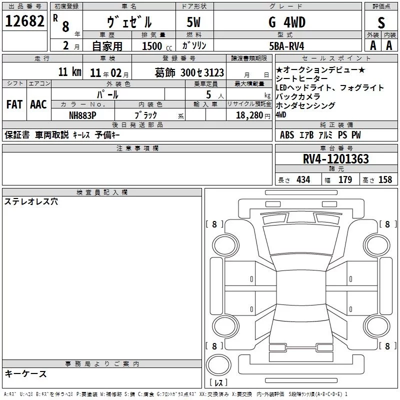 Honda VEZEL с аукциона Японии TAA Yokohama лот № 12682