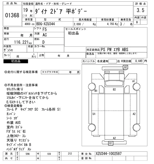 Toyota DYNA с аукциона Японии ARAI Oyama VT лот № 1368