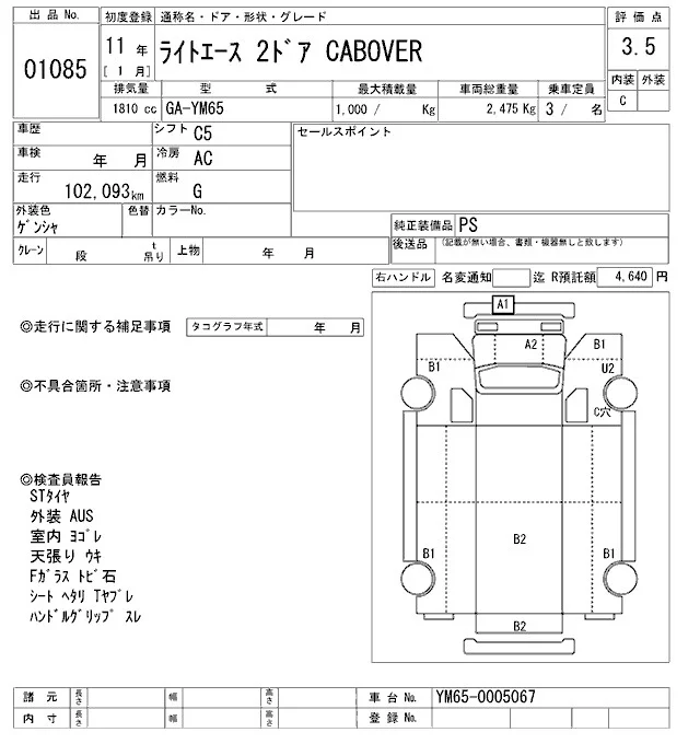 Toyota LITE ACE TRUCK с аукциона Японии ARAI Oyama VT лот № 1085