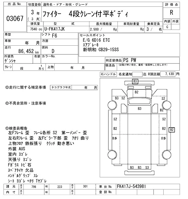 Аукционный лист  FUSO FIGHTER лот № 3067