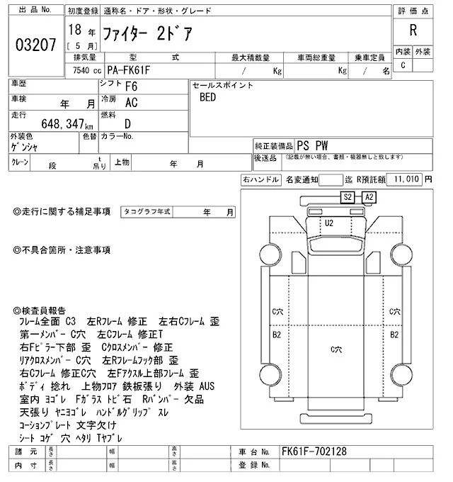 Mitsubishi FUSO FIGHTER с аукциона Японии ARAI Oyama VT лот № 3207