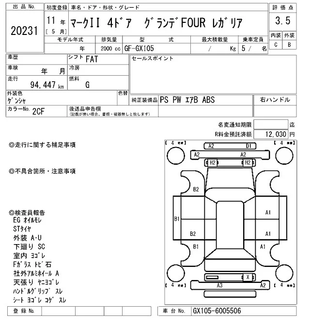 Toyota MARK II с аукциона Японии ARAI Oyama VT лот № 20231