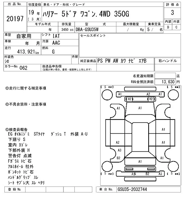 Toyota HARRIER с аукциона Японии ARAI Oyama VT лот № 20197