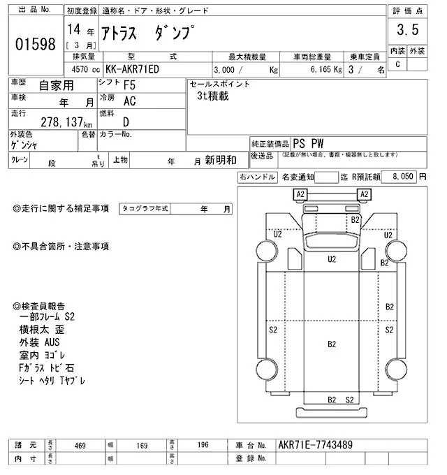 Nissan ATLAS с аукциона Японии ARAI Oyama VT лот № 1598