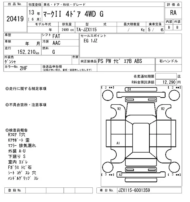 Toyota MARK II с аукциона Японии ARAI Oyama VT лот № 20419