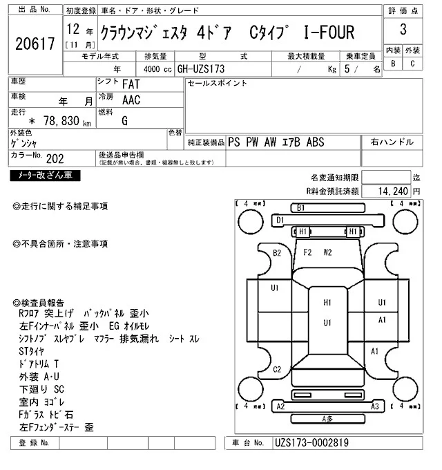 Toyota CROWN с аукциона Японии ARAI Oyama VT лот № 20617